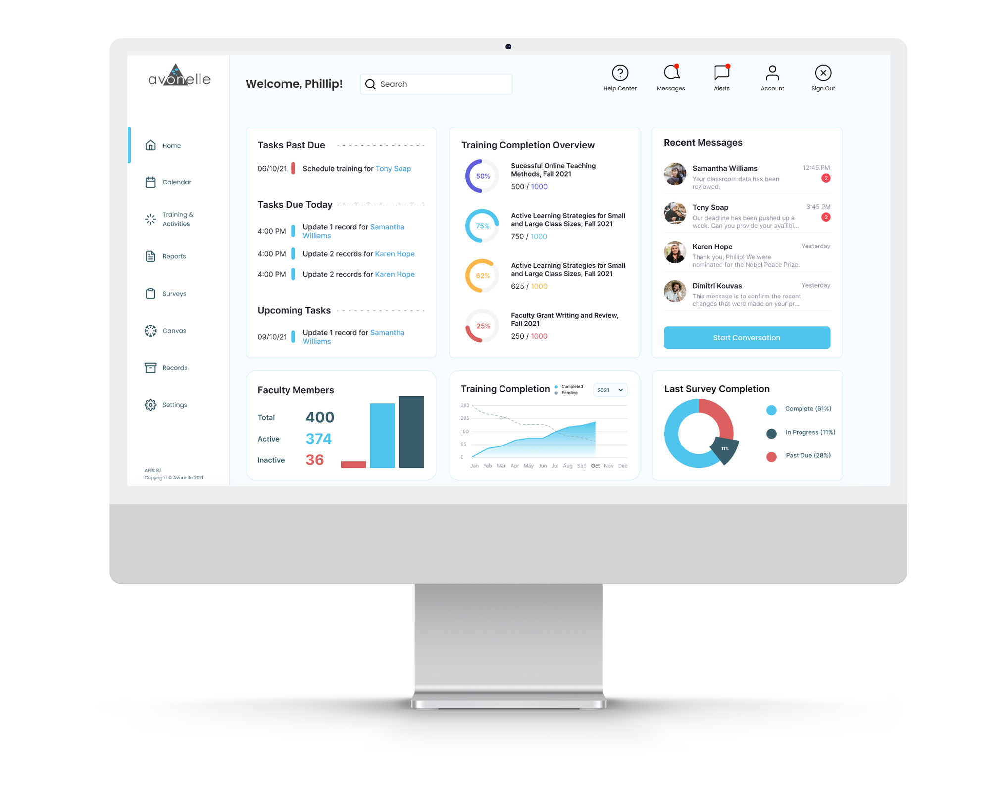 AFES 8.1 (Avonelle Faculty Engagement Services) is Avonelle’s software tool that provides solutions for Higher Education faculty and administrators who seek to identify the impact of their professional development activities on faculty effectiveness and student outcomes.